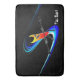 Tiki Surfer is a hand drawn illustration i made with ink and then digitally edited and upgraded with full colour in dark and light blues, red and yellow gradient and Tiki Surfer holding long doubled ended spear as he surfs with no board.