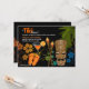 Celebrate, island style, with this colourful and festive invitation. The black background has tropical flowers, palm trees, torches, a Tiki style mask, tropical cocktail and flip flops. It's perfect for a luau, Hawaiian party or any happy occasion. The card is easy to customise with your wording, font, font colour and choice of six paper types.