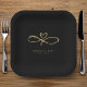 Elegant black and gold wedding paper plates with text Til Death do us Part in infinity symbol with heart. Personalise it with your wedding details.