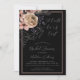 Beautifully dark bridal shower invitation with beige and pink florals, ferns, raven feathers, twigs and berries on a black background. Distressed hand lettered calligraphy typography with 'Til Death Do Us Part adds to the moody feel. Perfect for a gothic or Halloween bridal shower party. See coordinating items in our shop, Enchanted Finch.