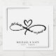 Elegant black and white wedding wine bottle labels with text Til Death do us Part in infinity symbol with heart. Personalise it with your wedding details.