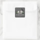 These elegant gothic "Til Death Do Us Part" Irish St. Patrick's Day wedding square stickers feature hand-drawn Irish & gothic themed illustrations in black ink, showcasing husband and wife skulls and a black crow adorned with green roses, leaves, berries, wildflowers and green clovers. Elegant dark grey background. Personalise with your wedding details. All text is editable.