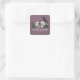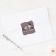 These elegant gothic "Til Death Do Us Part" Irish St. Patrick's Day wedding square stickers feature hand-drawn Irish & gothic themed illustrations in black ink, showcasing husband and wife skulls and a black crow adorned with green roses, leaves, berries, wildflowers and green clovers. Elegant plum purple background. Personalise with your wedding details. All text is editable.