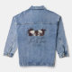 This Til Death Gothic Floral Wedding Denim Jacket features a hand-drawn black ink illustration of two skulls nestled among dark florals in rich mauve and lilac roses. The phrase “Til Death Do Us Party” appears in elegant dark burgundy script, followed by date for wedding or title such as Bridesmaid, Maid of Honor, or Bride Tribe.