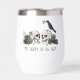 This elegant gothic "Til Death Do Us Part" Irish St. Patrick's Day wine tumbler features hand-drawn Irish & gothic themed illustrations in black ink, showcasing husband and wife skulls and a black crow adorned with green roses, leaves, berries, wildflowers and green clovers. All text is editable.