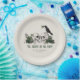 These elegant gothic "Til Death Do Us Part" Irish St. Patrick's Day wedding paper plates feature hand-drawn Irish & gothic themed illustrations in black ink, showcasing husband and wife skulls and a black crow adorned with green roses, leaves, berries, wildflowers and green clovers.