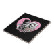 Bride and groom skulls are dressed in their wedding finest with JUST MARRIED text.