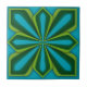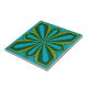 Tile, Abstract Flower, Cyan Chartreuse Green Ceramic Tile