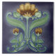 Art Nouveu Ceramic wall tile, this design is a reproduction made from an old tile from the 1880s to 1920s, the tile is smooth and flat, it is not 3D, special to use in interior walls, kitchen backsplashes, bathroom walls, fireplace decorations, coasters, trivet, or can be a beautiful gift for any occasion