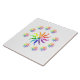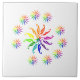 Leaves in standard colours of artist's colour wheel (red, orange, yellow, green, blue, purple). Eight small clusters form circle around large centre cluster.