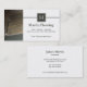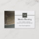 This construction flooring business card has a photograph on the left side of the grooves in some grey mortar left from a trowel.  In the background, you can see some tile that is being laid.  On the right, there is a pewter grey square at the top with two stripes behind.  There, you can easily customise the monogram initial.  Below and on the backside, you can personalise all of the details of the business.
