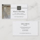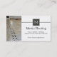 This construction flooring business card has a photograph on the left side of a tile floor that has a glass tile border. On the right, there is a pewter grey square at the top with two stripes behind. There, you can easily customise the monogram initial. Below and on the backside, you can personalise all of the details of the business.
