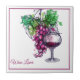 This ceramic tile trivet is shown with a wine lover grapes and wine print.