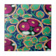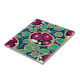 a tile with colourful art deco design. magenta flowers, green leaves on blue background. perfect as a coaster.