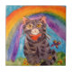 KITCHEN TILE WITH WATERCOLOR OF CAT AT RAINBOW BRIDGE