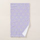 A fractal art design in purple and gold is tiled across this bath towel set. The design has a floral look. The background is lavender. Matching bathroom accessories are available.