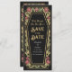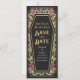 Make a bold statement of eternal love. This gothic wedding Save-The-Date features ‘Till Death Do Us Part’ in a coffin-shaped frame, adorned with thorns, roses, and gold accents against a black background. Perfect for a hauntingly romantic celebration! Personalise the text, font, and background colour to suit your design preferences. Matching Items in our shop for a complete party theme. Please note that the gold on the cards is NOT real foil and is printed in flat colours.