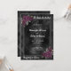 Darkly beautiful wedding invitation with Till Death Do Us Part saying, deep purple roses, and a black diamond pattern background. Perfect for a gothic or Halloween wedding. Looks deadly stunning.