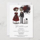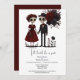 Till Death do us Part Gothic themed wedding invitations by Ricaso - designed featuring a bride and groom skeleton couple and red and black flowers. A wonderful weirdly cute wedding announcement invite for the unique goth couple