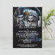 Introducing our budget-friendly invitation that sets the perfect tone for your spooky celebration! Picture a charming corpse bride and groom standing hand-in-hand in a moonlit graveyard, surrounded by the ethereal glow of a large full moon. Behind them, ghoulish silhouettes of twisted trees create a hauntingly beautiful backdrop.