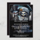The dark black background enhances the eerie atmosphere, and it features editable white text templates, allowing you to personalise your invitation with your own ghoulish wording. Perfect for any Halloween wedding or spooky gathering, this invitation is sure to delight your guests with its fun and frightful charm!
