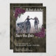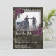 Darkly beautiful save the date card with Till Death Do Us Part saying, dark purplish roses, and a sepia diamond pattern background. Script typography. Personalise with your own photo.