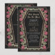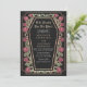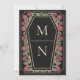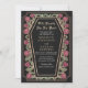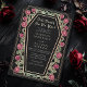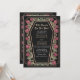 Make a bold statement of eternal love. This gothic wedding invitation features ‘Till Death Do Us Part’ in a coffin-shaped frame, adorned with thorns, roses, and rose gold accents against a black background. Perfect for a hauntingly romantic celebration! Personalise the text, font, and background colour to suit your design preferences. Matching Items in our shop for a complete party theme. Please note that the rose gold on the invitation is NOT real foil and is printed in flat colours.