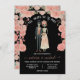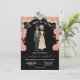 Till death do us party skeleton bride and groom with peachy pink flowers on a black background. Perfect for the goth couple or a couple that is getting married around the time of Halloween or the day of the dead! Background colour can be changed and all wording.