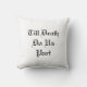 This black and white throw pillow is accented with the saying, Till Death Do Us Part, and the names and wedding date of the happy couple.