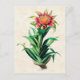 Postcard with a digitally cleaned and enhanced vintage image of an orange tillandria plant and flower on a parchment background. Illustrated by Etienne Denisse for Flore d'Amerique, published in Paris, 1843.