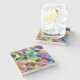 The coasters are gorgeous, a quality feel and heavy weight. They look like a precious archeological find. A rustic stone juxtaposed with a modern floral black and white print. I like the way the print goes slightly imperfect on the cut stone edges giving them a kind-of natural beauty.