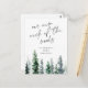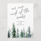 Elegant woodsy moving announcement postcard features a copse of tall watercolor pine trees in shades of greyed sage and hunter green. "Our new neck of the woods" appears at the top in handwritten script lettering. Personalise with your new address and family name. A chic moving announcement for dwellings in mountain or forest settings.