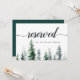 Indicate reserved seating at your wedding with this woodland chic sign. Personalise with two lines of custom text in calligraphy script and modern block lettering (shown with "Reserved" and the name of the guest with reserved seating), with a bottom border of winter watercolor pine trees in forest and hunter green. Designed to coordinate with our Timber Grove wedding collection.