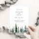 Elegant winter wedding save the date cards feature soft off-black lettering with a bottom border of hunter green watercolor pine trees. A chic choice for winter weddings in forest, mountain or woodland settings, these elegant flat save the date cards are easy to customise with your names, wedding date, wedding location, and website or an indication that a formal invitation will follow.