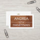 A timber wood layer is encapsulated by a white rectangular frame. Over at the top lies your prestigious name with the business name at the base of the card. At the center is a handyman tools demarcation line..