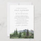 Set the tone for your elegant outdoor wedding with this double-sided invitation from the Timberline collection by Redwood & Vine Design Co. The front features watercolor trees and mountains in muted green tones—perfect for a forest wedding or winter celebration. The back offers a clean, rustic minimalist layout for additional event details and a scannable QR code.