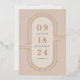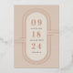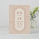A simple and elegant save the date design with art deco influences, featuring your wedding date, names, and wedding location displayed on an arched central element adorned with rose gold foil line art.