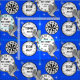 Time Flies - Birds and Clocks - Bright Blue Fabric