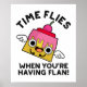 Time Flies When You're Having Flan Food Pun features a cute flan flying because he's having fun . Perfect pun gift for family and friends who love cute food flan puns.