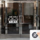 This fun window cling features text image "Time For A Coffee Break" with a steaming cup of coffee. Colour can be easily changed by clicking "Edit Design". Perfect for your cafe window.