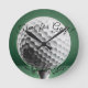 Wall clock with an image of a golf ball on a tee in front of a green background, and the words "It's time for golf!"