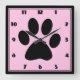 Stylish and fashionable, art deco numbers surround this black pawprint on a light pink background.