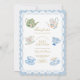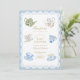 This elegant baby shower invitation features a charming tea party theme with beautifully illustrated teapots and teacups in soft floral patterns. The delicate blue typography combined with pastel tones creates a timeless and graceful design, perfect for celebrating a mum-to-be.