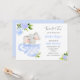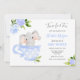 It's time for tea with the mummy to be! This fun tea party and elephant themed baby shower invitation features a watercolor elephant sitting in a blue teacup with a border of blue flowers and greenery. Personalise with your information or click "Click to customise further" to edit font styles, size and colours.