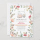 A cute wedding shower design featuring a border of hand-painted blush pink watercolor flowers and greenery. There is an illustration of a teapot and a lovely stack of teacups. The text reads "Time for tea with the bride-to-be!" with the bride's name in big rustic capitals. The date and time appear on a blush pink banner, and the rest of the event information is below. Cards reverse to a beautiful floral pattern against a pale pink-colored background. This design can be customized for any occasion! Simply edit the text in the template boxes to invite your guests in style! Feel free to contact me if you need any assistance customizing these invitation cards - I'll be happy to help! View the collection link on this page or visit our store for more designs.