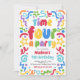 Time Four A Party Confetti Balloon 4th Birthday Invitation