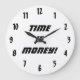 This is a clean and elegant wall clock, white background with black numbers of a simple style. The perfect clock for people who like to be reminded to get on with things! Features the text "Time is Money!" in a font style that speaks of urgency! You of course can alter the text to say something else if you wish.