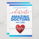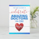 Honour a doctor with this design featuring the message, "International doctors' day: The time has come to celebrate AMAZING DOCTORS like YOU!" Design features ekg and heart illustration and blue halftone background. All text is fully editable. Back features this placeholder message, "You are worthy of a day to HONOR and CELEBRATE you for all you do to make this world a happier, healthier place. Happy Doctors' Day!”