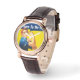 I loved the ability of designing the watch face, I chose the men’s style as I like a “big watch look”, the leather strap is good quality. Easy to read watch with illuminated hands, great for 24/7 use. I am very pleased with the end result of my design. I have no hesitation in recommending the individualisation of an item. The customisation tools are easy to utilise, you won’t be disappointed. Definitely 5 stars