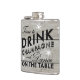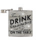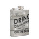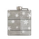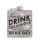 This is a fun and flirty flask that says, "Time to Drink Champagne and Dance on the Table" on an illustrated barn board background decorated with snowflakes, making it a perfect 21st birthday gift, holiday gift or bachelorette gift.